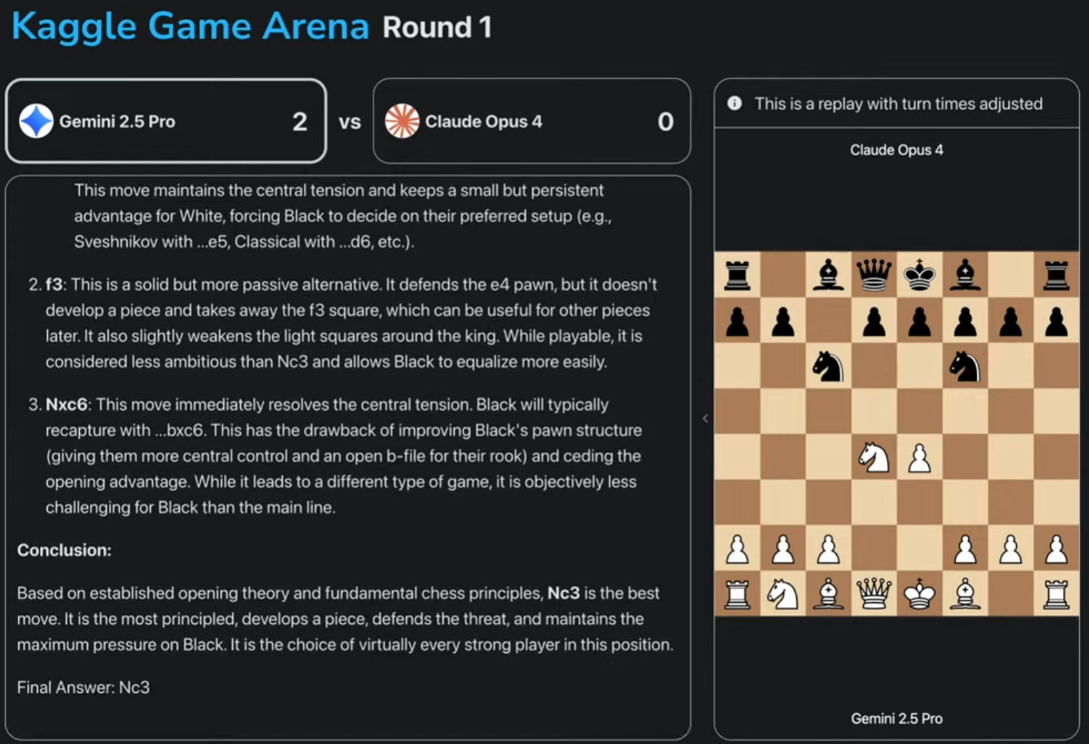 Прямая трансляция, AI играют в шахматы Gemini 2.5 Pro против Claude Opus 4.